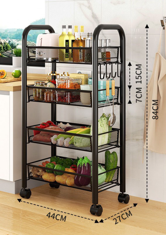 - عربات خدمة معدنية 4 طبقات متعددة الأغراض مكوّنة من أربعة طبقات، توفر حلاً عمليًا لتنظيم وتخزين الأدوات والمستلزمات اليومية بكفاءة عالية.